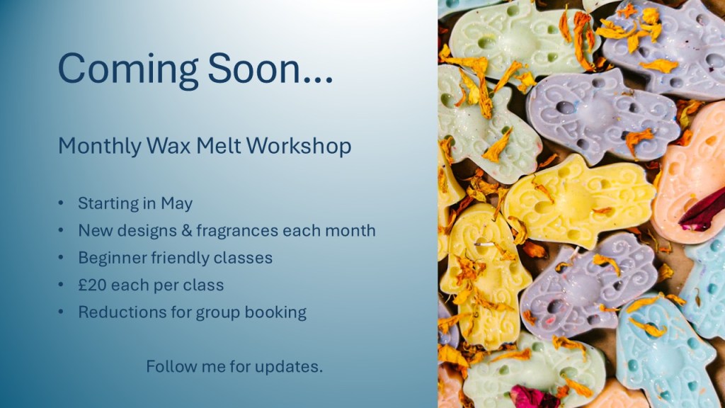 Or choose from our Candlemaking workshop £20 (1 hour) Or our ‘Fun with Wax’ Workshop – £25 (2 hours)